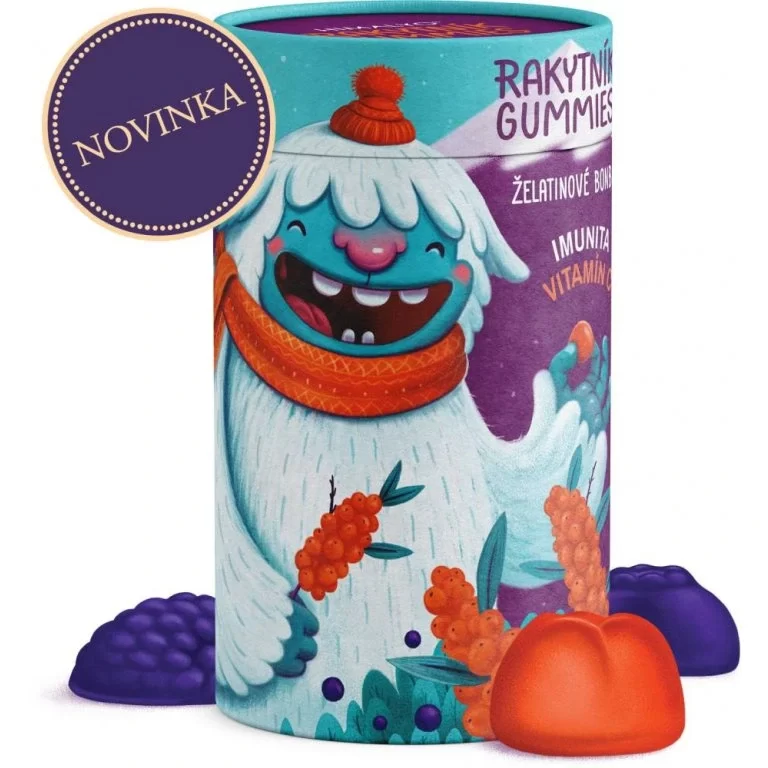 YETTI GUMMIES představují zdravé mlsání, s vysokým obsahem vitaminu C, nejen pro děti. Tyto žvýkací bonbony podpoří imunitu a jsou bez živočišné želatiny. Yetti Gummies pochází z vysokohorských oblastí Himalájí a jsou plné blahodárných extraktů z rakytníku a brusinky.